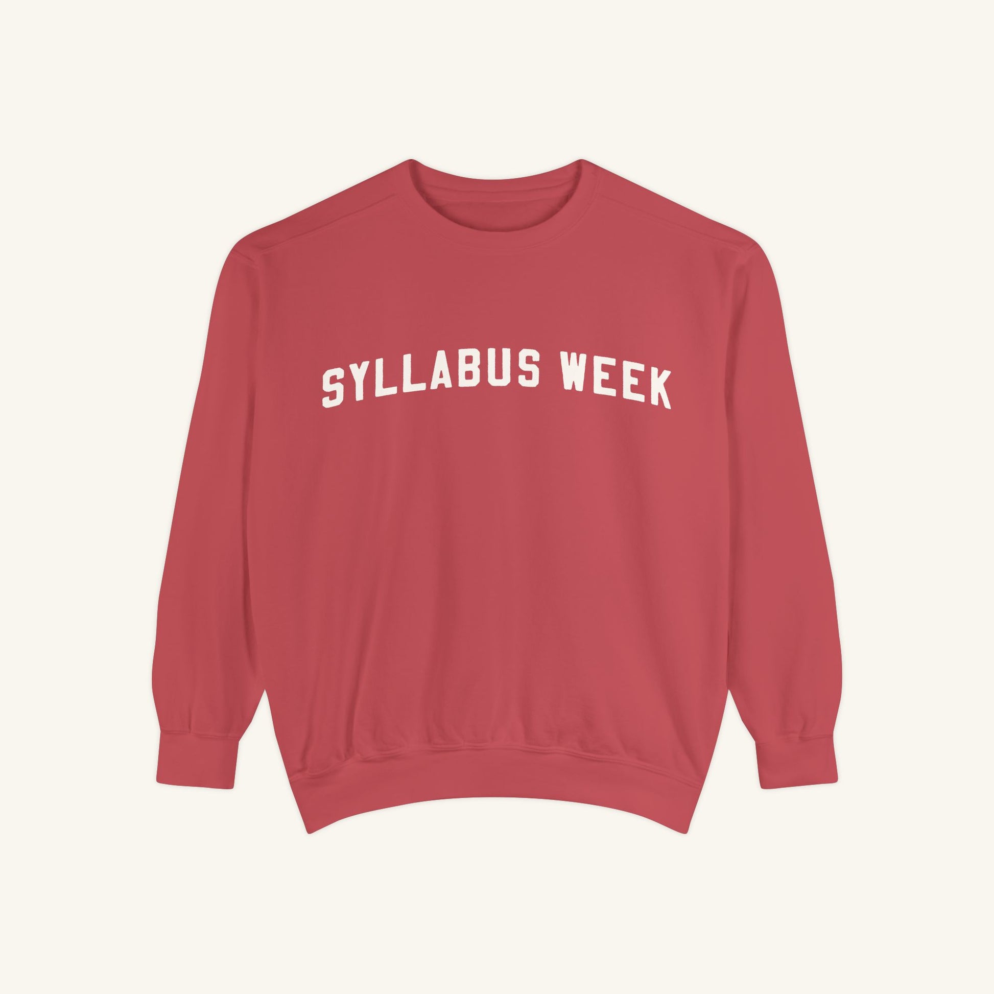 Graduate to comfort. The Alumni Crew by Syllabus Week is a premium heavyweight crewneck sweatshirt crafted from 14 oz Comfort Colors fleece, it delivers that authentic vintage collegiate feel — soft, broken-in, and built to last. The front is finished with Syllabus Week in a classic collegiate lettering, adding an elevated detail that feels straight from the archives.